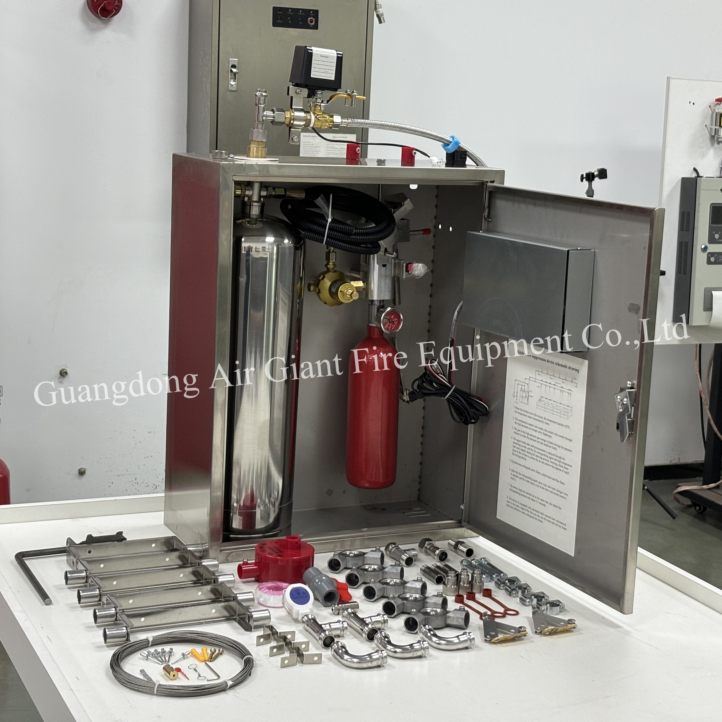 Urządzenie to może realizować automatyczny monitoring, wykrywanie i aktywację 24 godziny na dobę, z krótkim czasem rozpylania środka gaśniczego i szybkim gaszeniem w ciągu 5 sekund. Podczas gaszenia pożaru palący się olej nie wytwarza rozprysków. Produkt ten uruchamiany jest mechanicznie i nie wymaga zasilania elektrycznego. Aby zapobiec korozji, wszystkie surowce wykonane są ze stali nierdzewnej lub miedzi. Po zainstalowaniu i użytkowaniu nie zajmuje powierzchni kuchni, a jedynie przestrzeń i pozycję. Instalacja liczby i pozycji dysz jest elastyczna i spełnia wymagania specyfikacji. Projekt i instalacja na miejscu przeprowadzane są zgodnie z liczbą otworów palnikowych kuchenki. Przyjazny dla środowiska środek gaśniczy, łatwy do czyszczenia i wygodny do codziennego sprzątania. Jednocześnie urządzenie gaśnicze jest instalowane na otaczających ścianach strefy ochronnej, co nie zajmuje przestrzeni na podłodze strefy ochronnej.