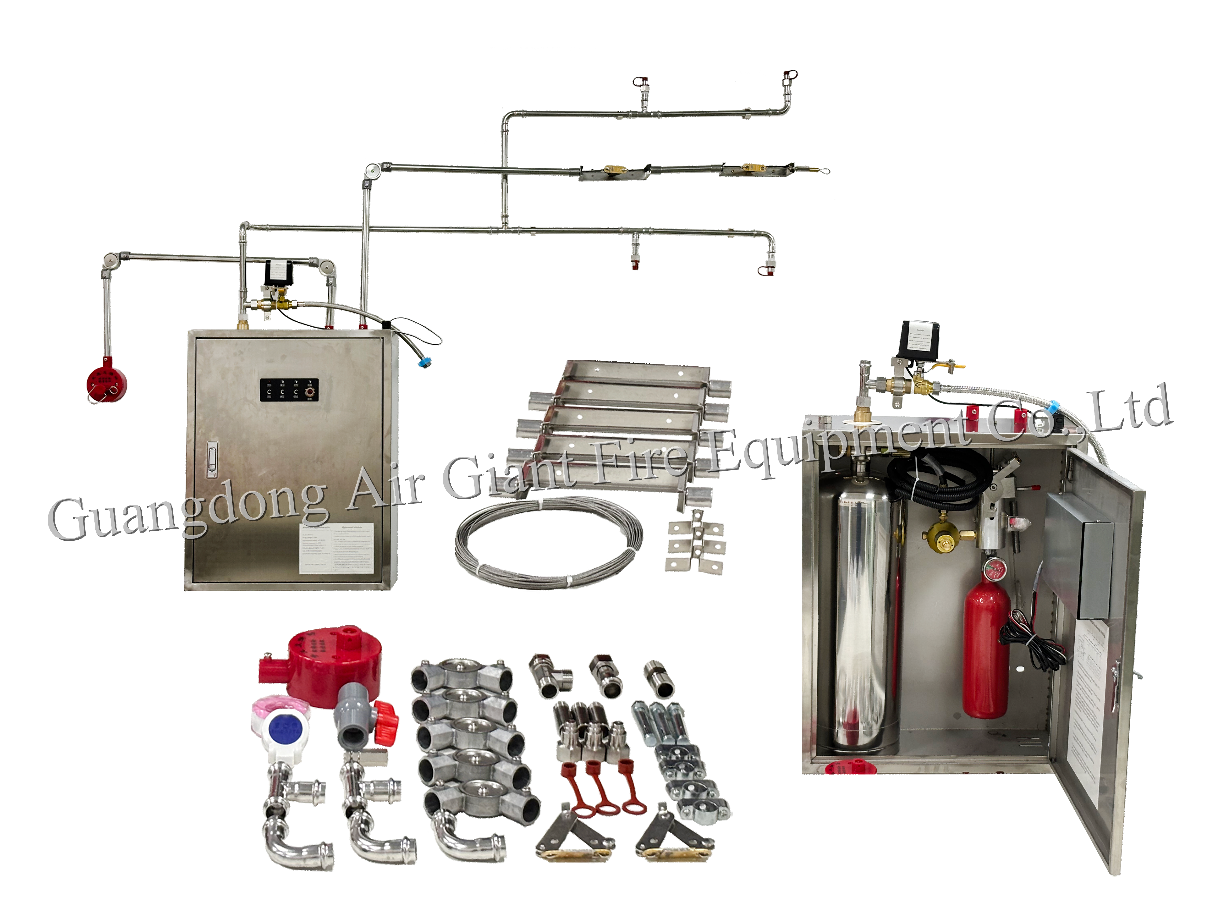 W celu lepszego zaradzenia powszechnym pożarom w kuchni, system gaśniczy jest wyposażony w specjalny środek gaśniczy przeznaczony do olejów kuchennych.bezwonny, niezanieczyszczające i łatwe w czyszczeniu, zapewniające bezpieczeństwo, a jednocześnie uwzględniające czyszczenie po użyciu.Może szybko gaszyć pożary spowodowane przez łatwopalne materiały, takie jak tłuszcz i skutecznie zapobiegać ponownemu zapaleniu się ognia.